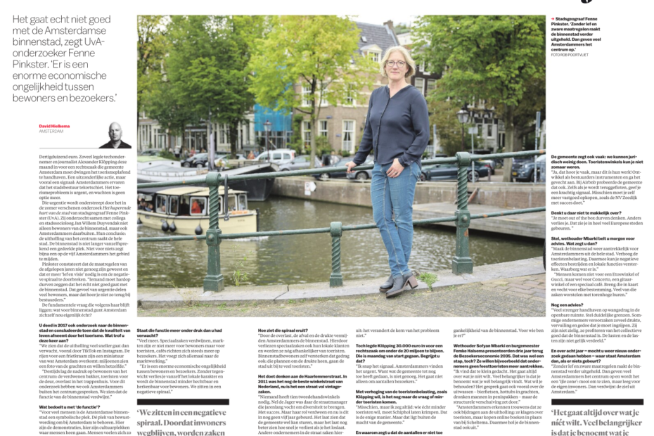 “Iemand moet durven zeggen dat het écht niet goed gaat met de binnenstad”, zegt stadsgeograaf Fenne Pinkster (UvA) tegen David Hielkema in het Parool.