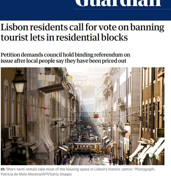 “Housing activists in Lisbon are to hand over a petition, signed by more than 6,600 residents, calling on city officials to agree to hold a binding referendum on banning tourist lets in residential blocks.” schrijft Ashifa Kassam in The Guardian.
